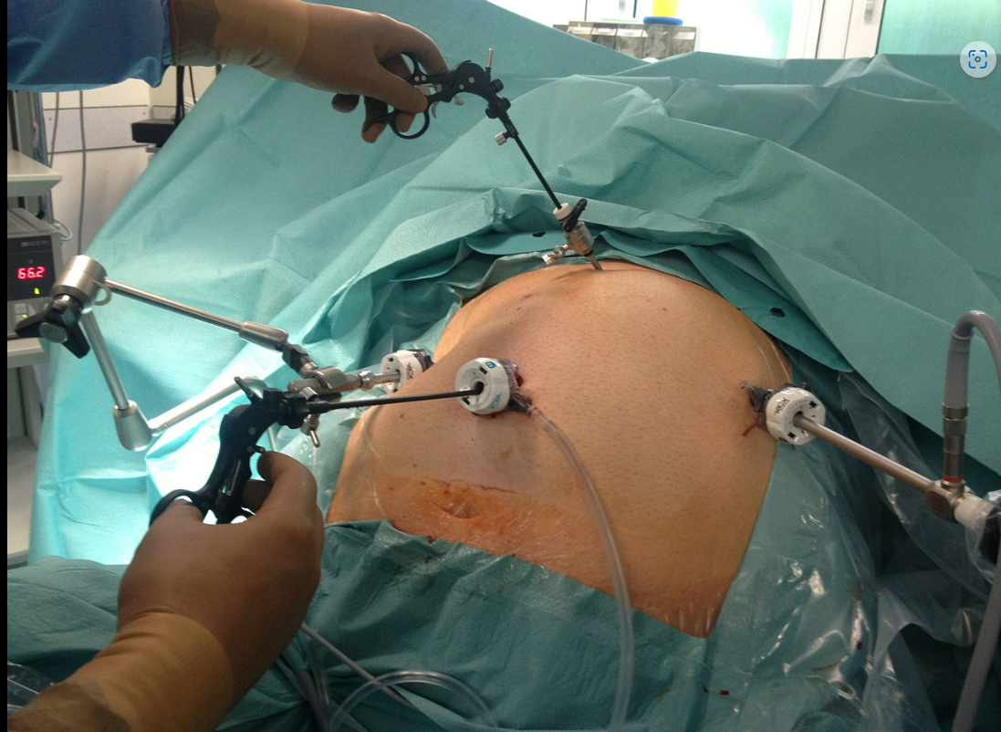 Der Eingriff erfolgt mit Unterstützung eines Operationsroboters oder durch laparoskopisch durchgeführt.