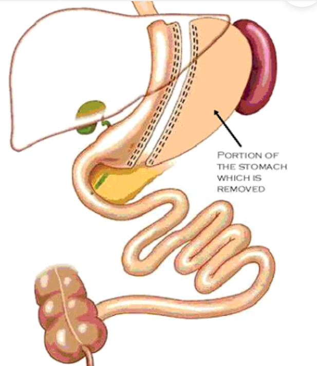 Hierbei werden größtenteils Fundus und Korpus des Magens entfernt und es verbleiben ca. 100 ml Magenvolumen.