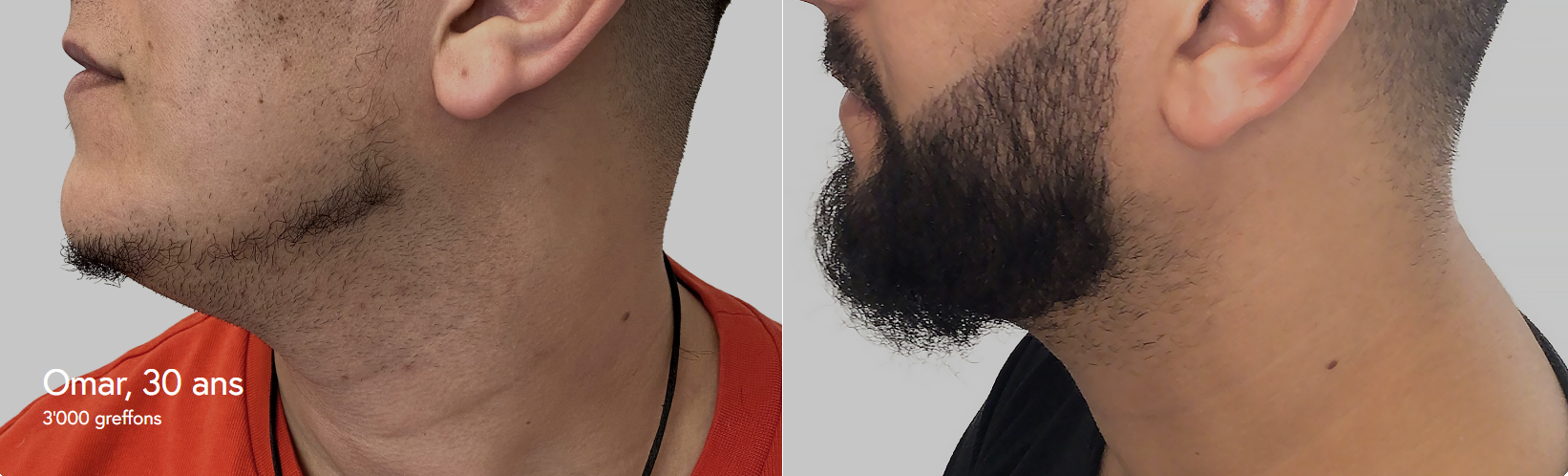 Cette procédure peu invasive consiste à transplanter des follicules pileux d'une zone donneuse, généralement à l'arrière de la header, dans la barbe ou les joues.
