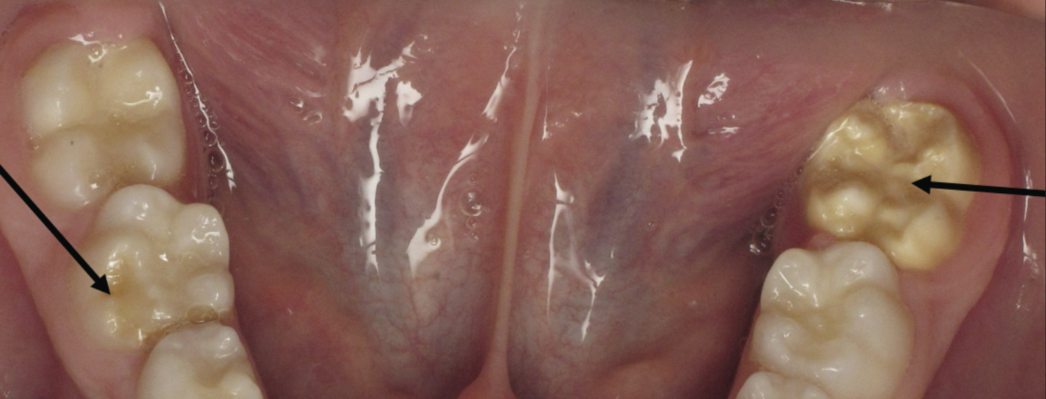Une MIH est une anomalie dentaire qui peut toucher les molaires ou les incisives permanentes de l’enfant. Les dents atteintes présentent des taches qui peuvent varier en taille et en couleur. Elles se carient plus rapidement, sont plus fragiles et plus sensibles au brossage, à la mastication, au froid et au chaud. L’application de vernis fluorés et le scellement des sillons font partie des soins curatifs les plus courants pour traiter cette maladie des dents.