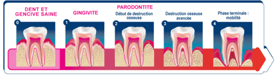 Cette maladie chronique est caractérisée par l’inflammation des gencives pouvant aller jusqu’à la rétractation des gencives et la destruction du tissu osseux.