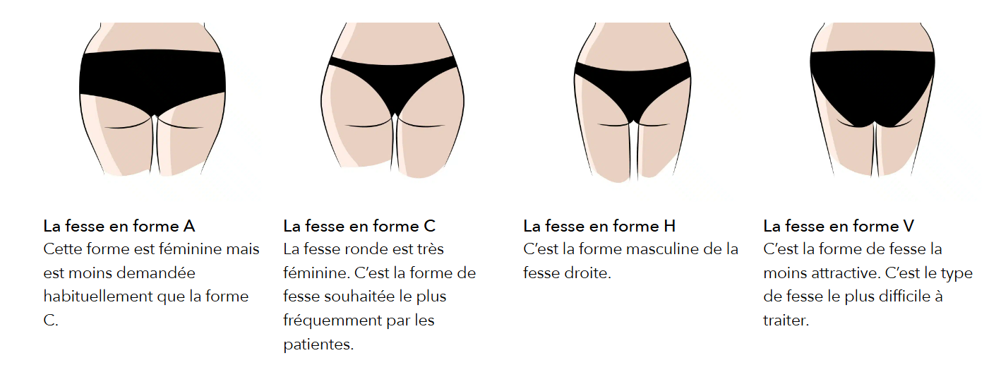 Cette chirurgie permet de sculpter des fesses plus rondes. Elle permet aussi de rééquilibrer la silhouette en prélevant du gras en trop dans certaines parties du corps et en le répartissant dans le fessier.le chirurgien pourra discuter avec vous de ce qui est possible de faire en respectant vos proportions et en tenant compte de votre anatomie et de vos attentes.