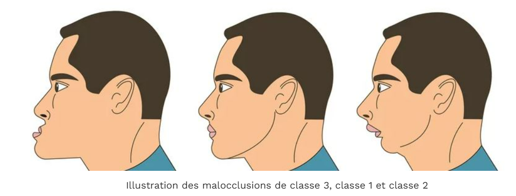 Cette malocclusion implique donc que les dents inférieures sont positionnées plus en avant que les dents supérieures.